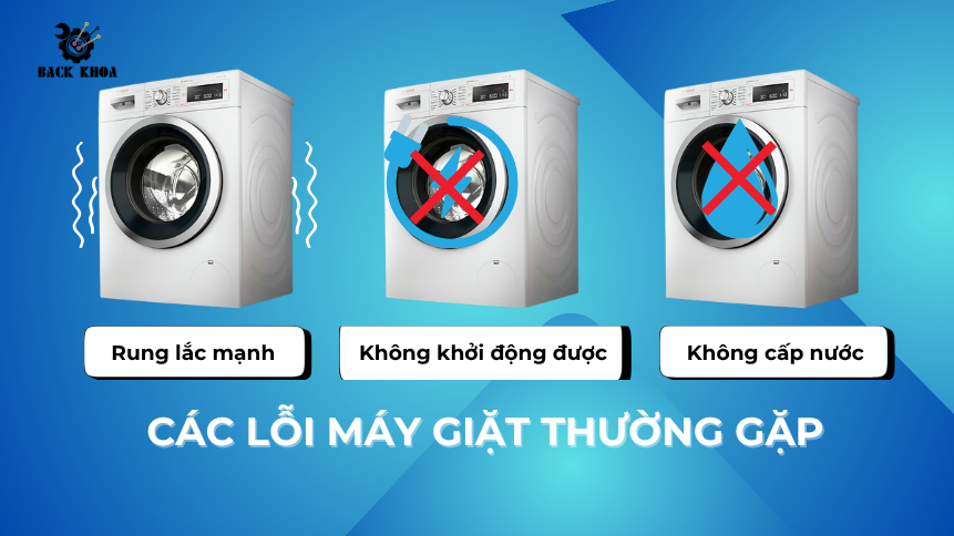 Trong quá trình sử dụng, máy giặt rất dễ gặp phải một số lỗi phổ biến như: máy giặt không vắt, không cấp nước, không xả nước, máy không khởi động được, máy giặt rung lắc mạnh hoặc phát ra tiếng kêu lạ và còn nhiều lỗi khác.
