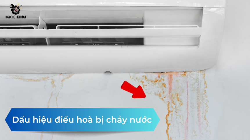 Dấu hiệu dễ nhận thấy nhất của điều hoà bị chảy nước là nước nhỏ giọt từ dàn lạnh trong nhà, thường rỉ xuống sàn nhà hoặc chảy theo tường. Nếu để ý kỹ, bạn cũng có thể thấy quanh khu vực lắp máy lạnh bị ẩm, thậm chí mốc.