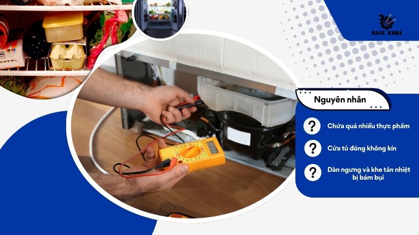 - Sờ vào bên hông hoặc phía sau tủ thấy nóng hơn bình thường.